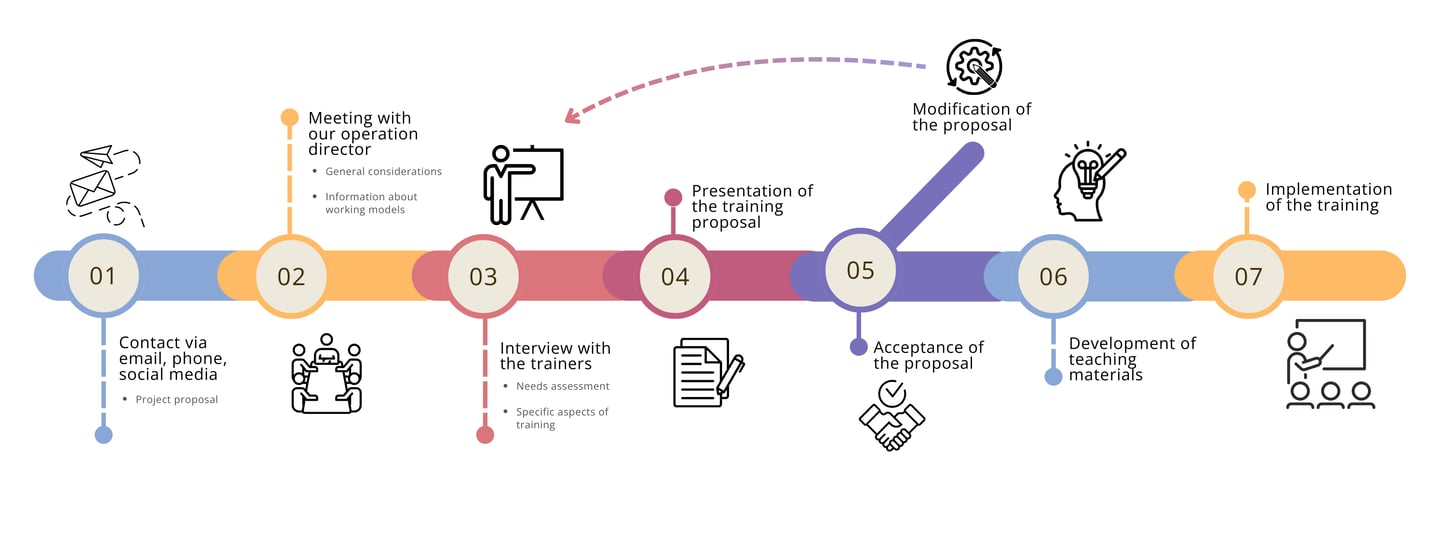 We offer unique, fully tailored courses, created according to the demands, interests and socio-cultural context of each client.