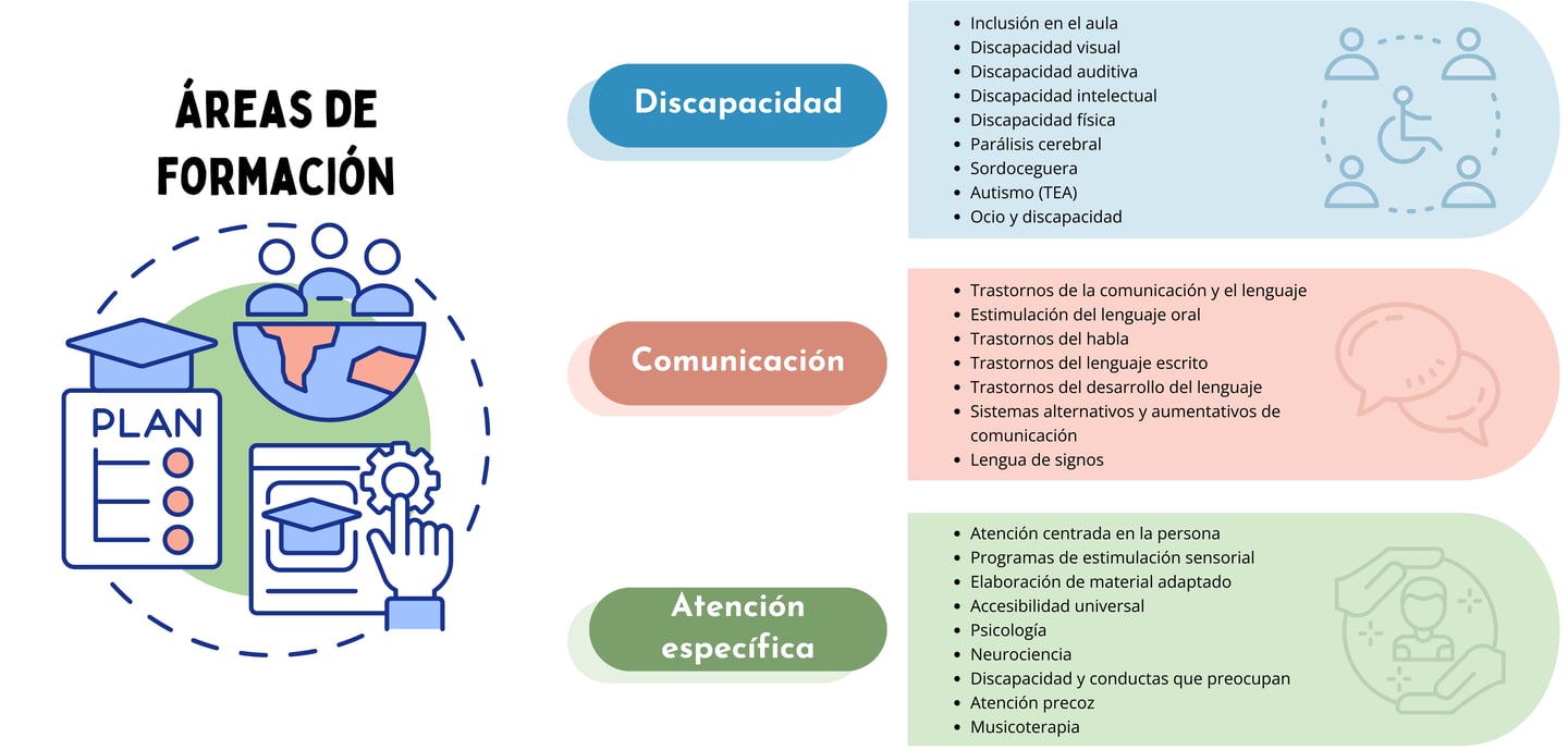 No es necesario contratar un único curso ni limitar la formación a un solo ámbito. Nuestros contenidos son transversales, y por ello las formaciones pueden integrar diversas áreas dentro de un mismo programa: discapacidad, comunicación, atención específica y asesoramiento especializado.