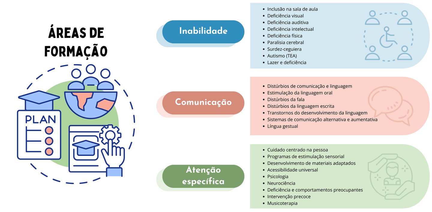 Não é necessário contratar um único curso nem limitar a formação a uma única área. Os nossos conteúdos são transversais e, por isso, as formações podem integrar diversas áreas dentro de um mesmo programa: deficiência, comunicação, atenção específica e aconselhamento especializado.